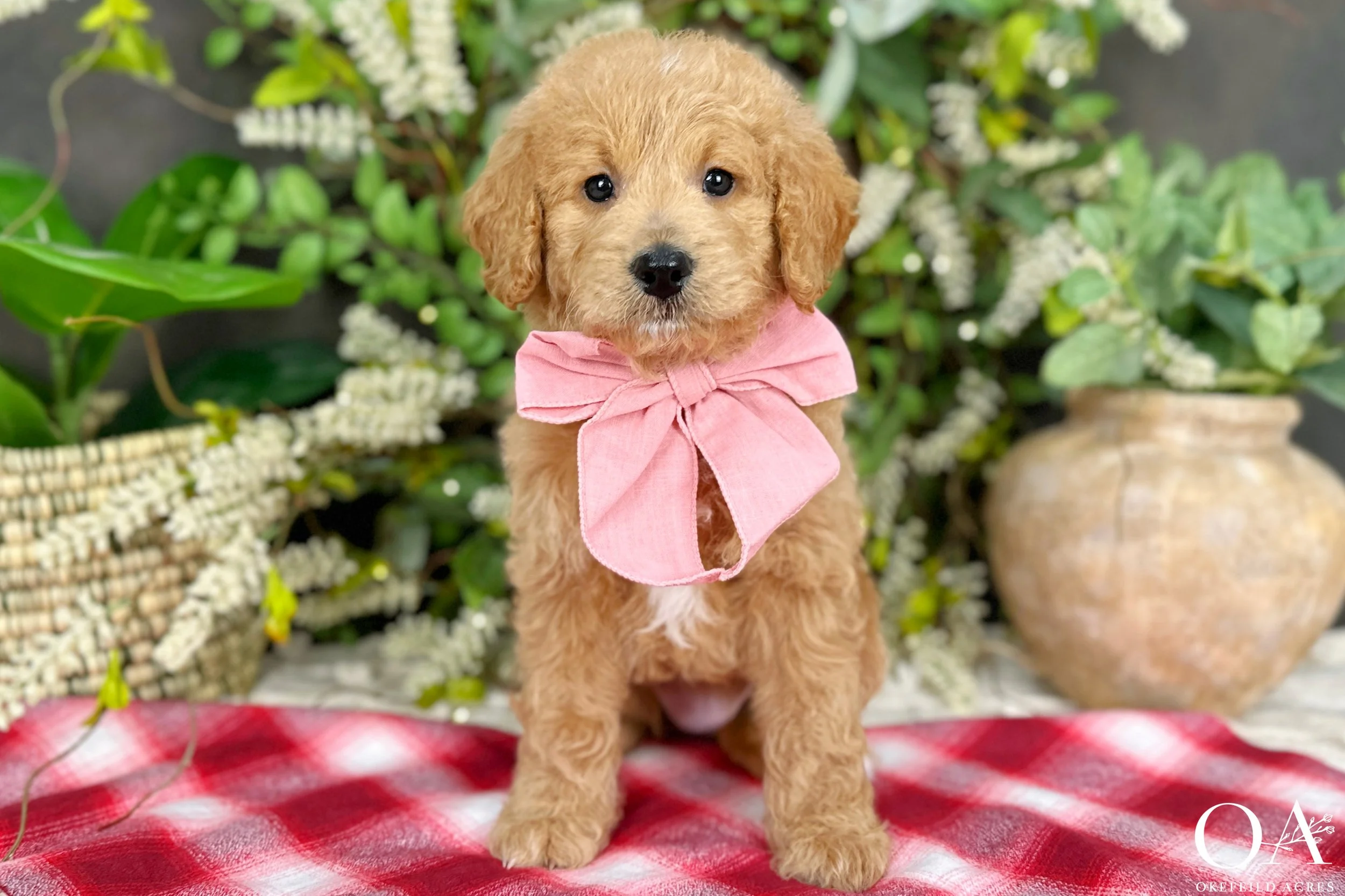 Our Medium English Teddy Bear Goldendoodles at Okefeild Acres range from 35 - 45 lbs - ideal for families who want a balanced size that fits comfortably in both home and lifestyle. These puppies are raised with crate and leash manners, socialized early, and temperament tested to ensure success as beloved family companions, therapy dogs, or active sidekicks. View available puppies and and upcoming litters below.