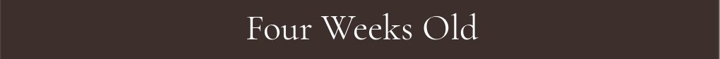 We are now four weeks old and this has been a big week! Our eyes are now fully open and we are beginning to respond to Marisa and Chasedy when they take us through our daily training. A litter box has been added to our nursery room and we are already searching it out to go potty in! We also finished up our Neurological Stimulation exercises and have started the next phase of our training and conditioning. Holding, cuddling and walking around during this development stage helps us to learn to be secure when being carried and handled.