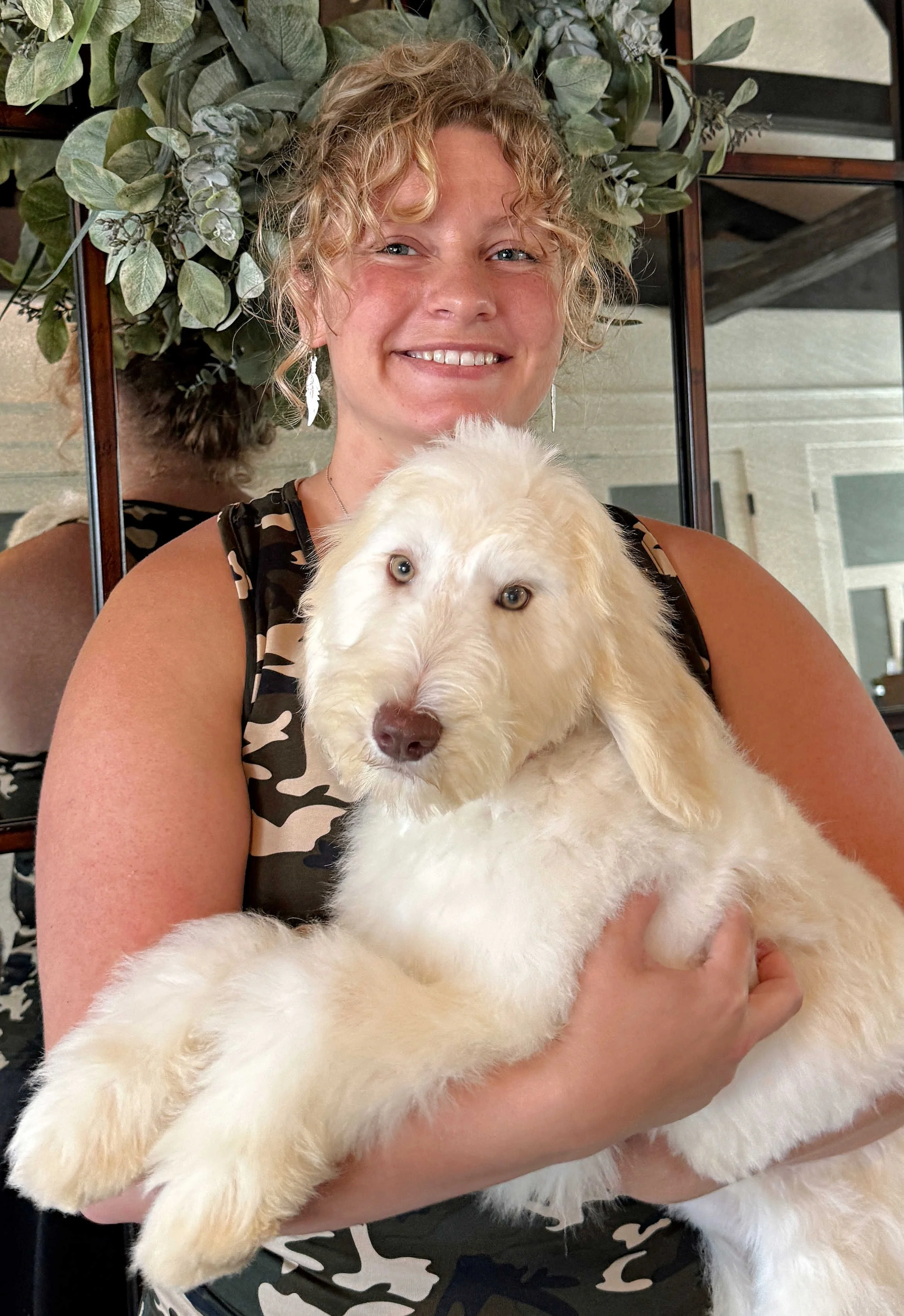 Her husband, Jeremy, a combat veteran and private contractor, was injured in a skiing accident in 2016. Their two dogs, Darcy (an Okefeild Goldendoodle) and Bruno played a critical role in his mental and physical recovery. Jeremy’s six year journey to recovery developed Lauren’s passion for raising quality family pets and comfort companions for the injured, disabled and for veterans who suffer from PTSD.